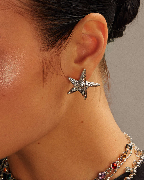 Orecchini a perno a forma di stella marina in argento