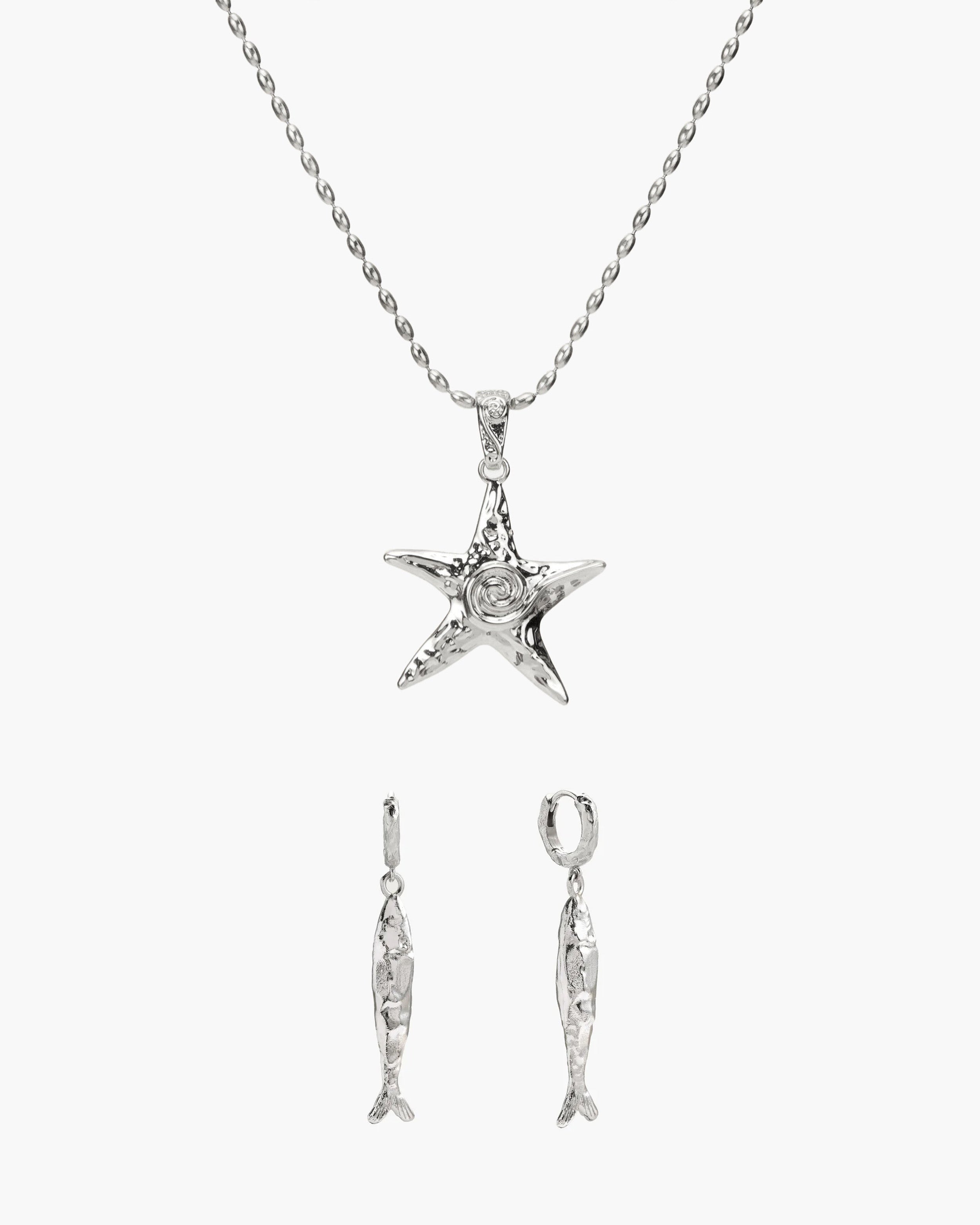 Anchovy Earrings & Starfish Necklace Set in Silver | en route jewelry