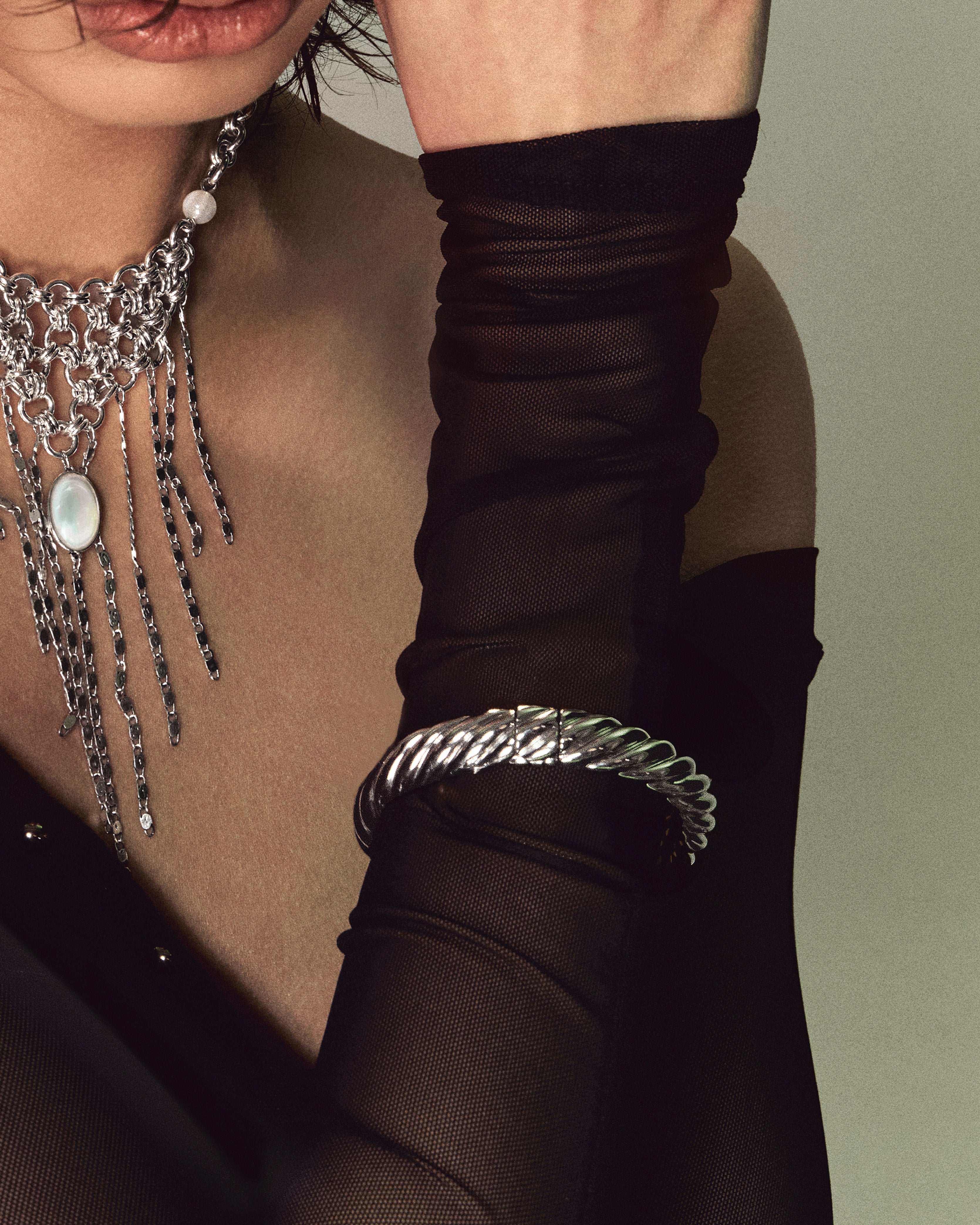 Silver Chunky Braided Bangle