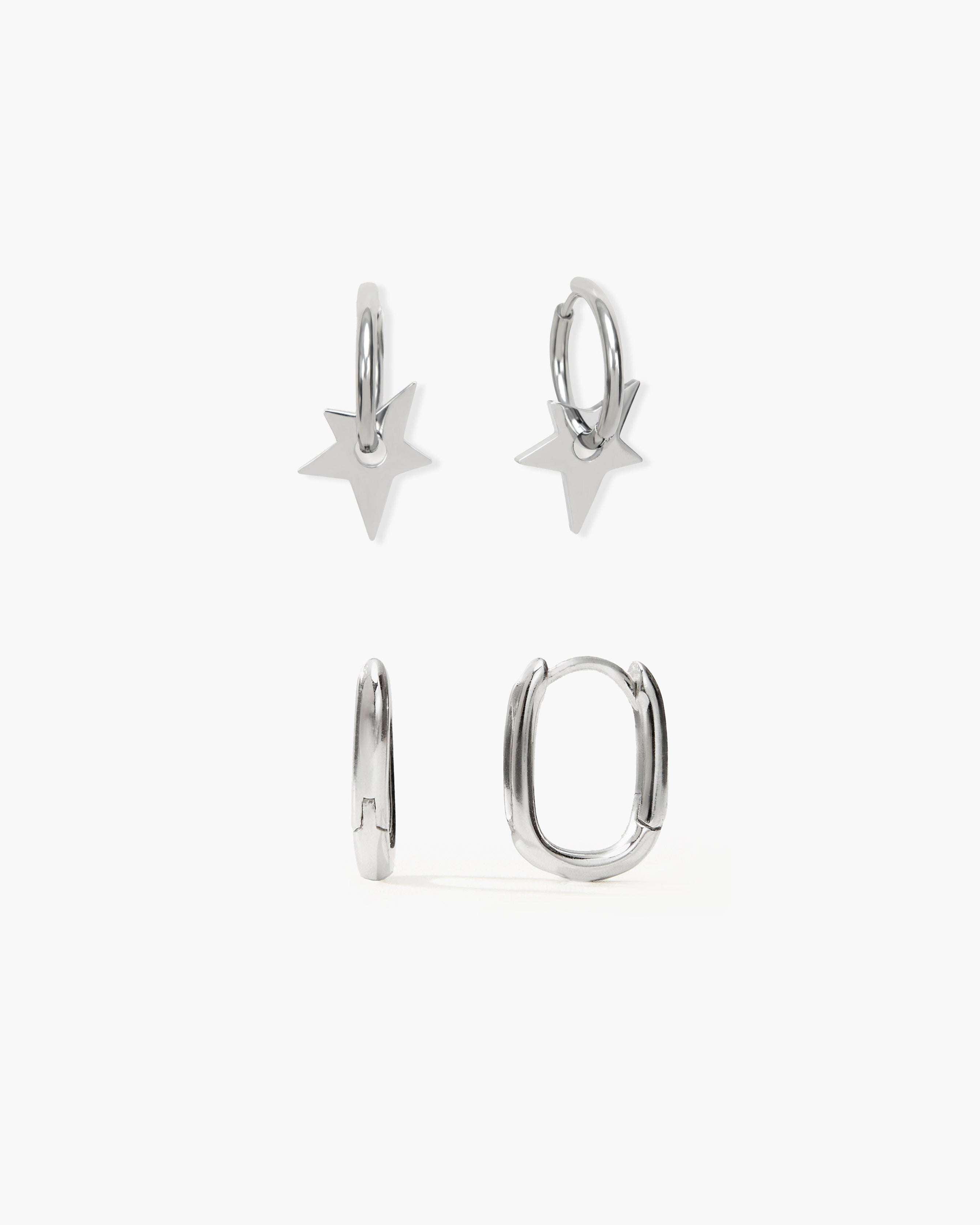 Silver Star & Link Earrings Set | en route jewelry